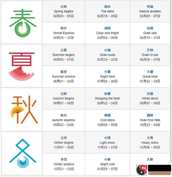 ershisijieqi二十四节气简表