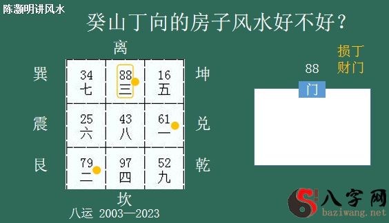 那麼最旺的是啥?是向方新星。 向方这颗星是最旺的,并且是双八到(shuangbadao)向,它是十分shifen聚财的,所以说假如jiaru大门口在这个部位,癸山丁(guishanding)向的房屋大门口在这儿,它就合乎hehu双八到(shuangbadao)向,那麼这yimen一门它就keyi可以纳财气caiqi。离宫为南方(nanfang),假如jiaru门在南方(nanfang),大家dajia就可以(keyi)判断这一住宅它是十分(shifen)聚财的,住进来之后zhihou财气caiqi很好,所以说这一门(yimen)叫财门,大家(dajia)开过yige一个财门。keshi可是它也有yige一个quexian缺陷,缺陷quexian便是山星(shanxing)八白(babai)也来到这一部位,那麼shanxing山星八白(babai)假如(jiaru)飞到这一部位,它会(tahui)有yige一个龙神下水。因此(yinci) 这一门yimen尽管是财门,可是(keshi)它另外也是一个(yige)损丁的门。它会(tahui)造成 一个(yige)什么结果jieguo呢?便是聚财不旺丁,而且财越旺,丁越dingyue损。丁意味着的是健康,意味着人体(renti)。