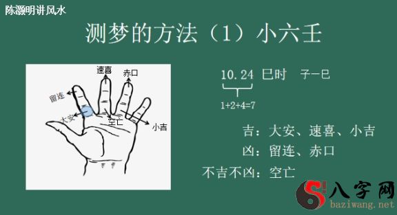 无名指的下方端部位,大安镇。随后上边一点,留连。正中间速喜,随后这个地方是赤口,随后这个地方是小吉,左手无名指的下方是小吉,中拇指的下方为空亡,这一实际上便是小六壬。这一归属于一种便捷法,如果是技术专业学习培训占卦的是不容易学它的,但大伙儿得话能够学习培训,因为它非常简单,我们很好把握。